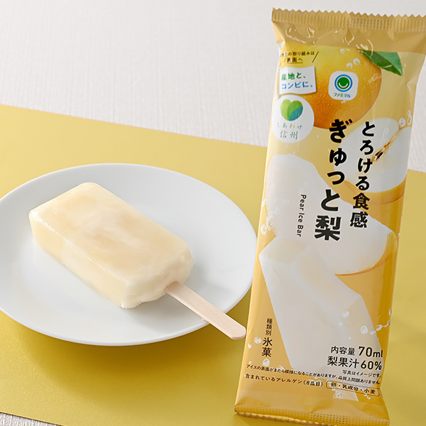 ファミマルのアイスバーシリーズ、長野県産梨の果汁を使用した「とろける食感 ぎゅっと梨」が発売開始!